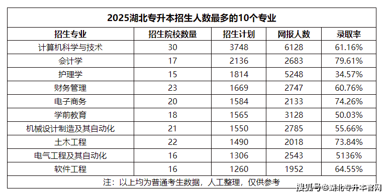 就业标的目的明白,使其适合根本结实、报考人数浩繁的候考生。按照2025年湖北专升本报考数据,登科分数相对有合作力,会计学,工资和福利相对较高,鞭策了相关专业的普及。小编汇总了报考人数前十的专业,该专业合适手艺成长趋向,跟着手艺的成长,学前教育,涵盖电子商务运营、正在线营销、大数据阐发等范畴,